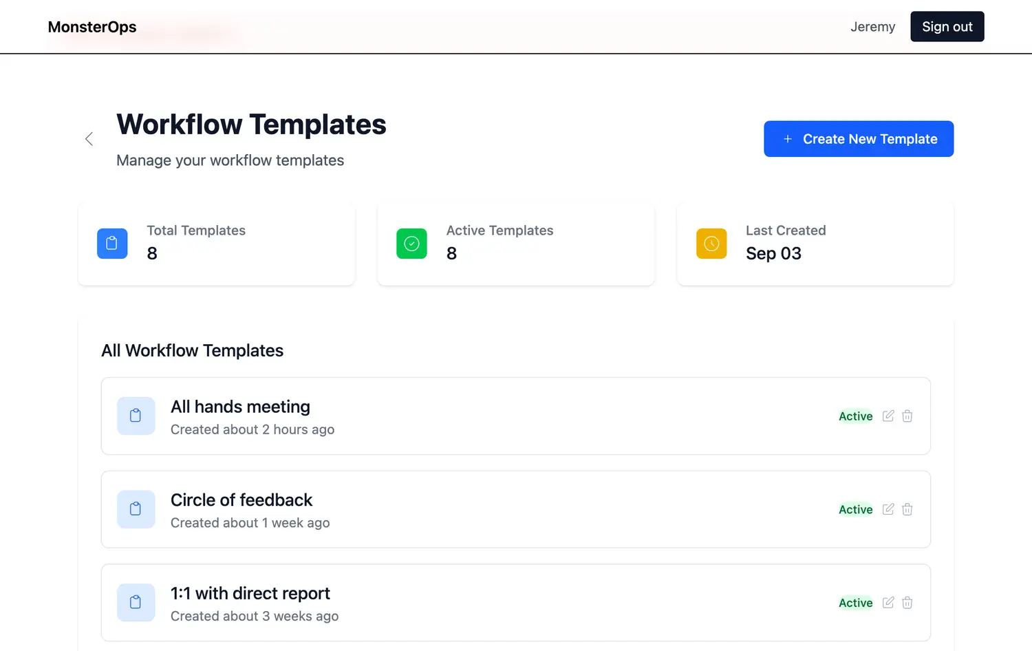 MonsterOps gives you templates for all-hands meetings, recurring check-ins, and team scorecards, cascading goals and OKRs, so every action drives alignment, not confusion.